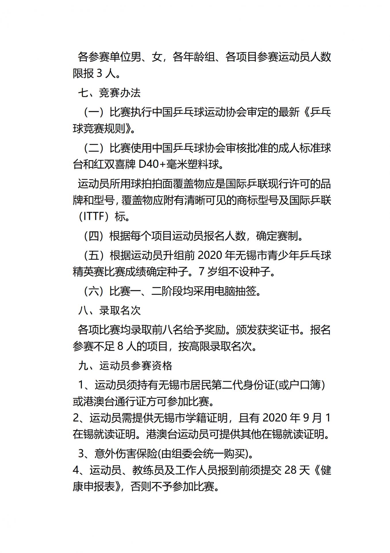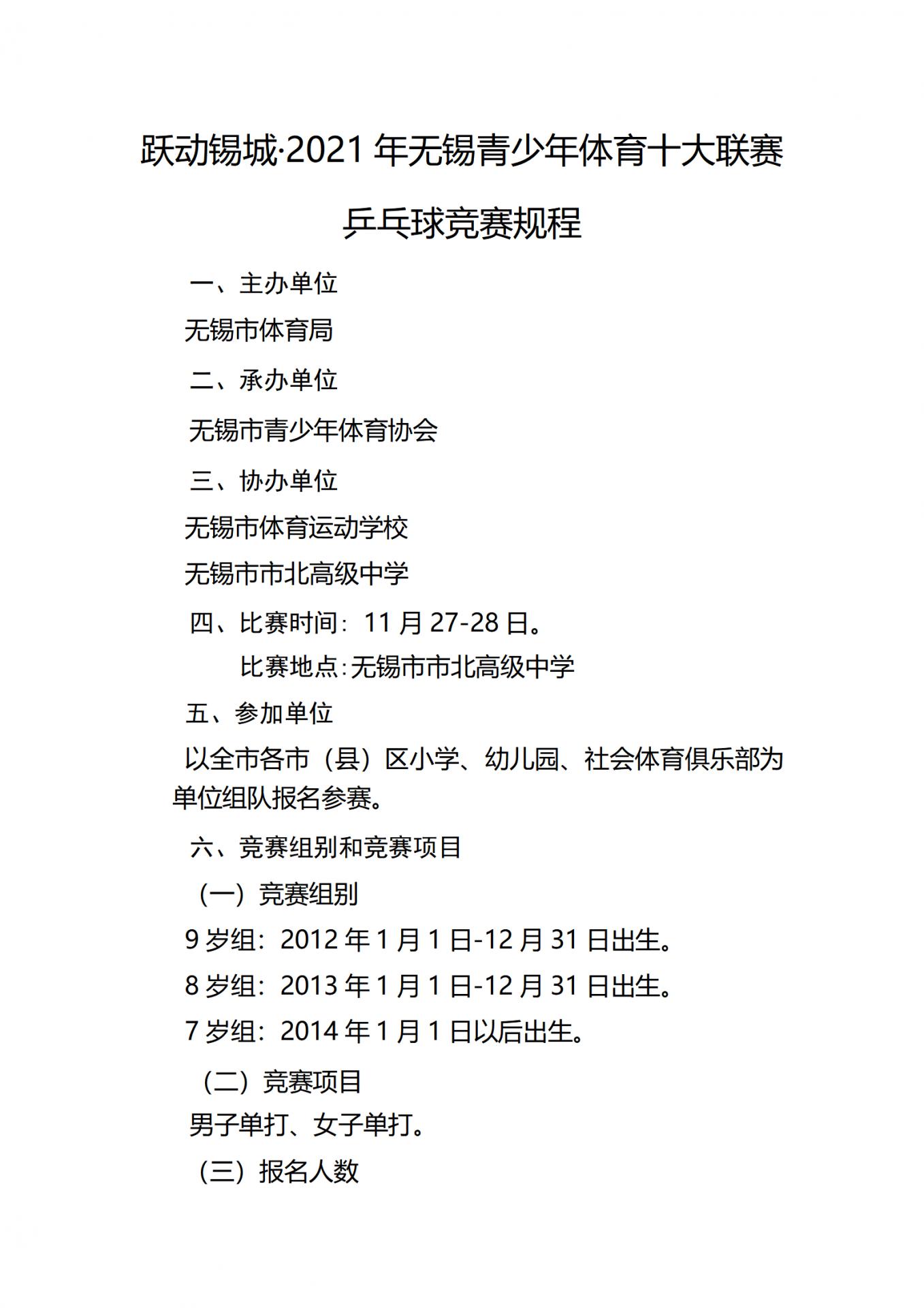 2021无锡青少年体育十大联赛乒乓球比赛规程